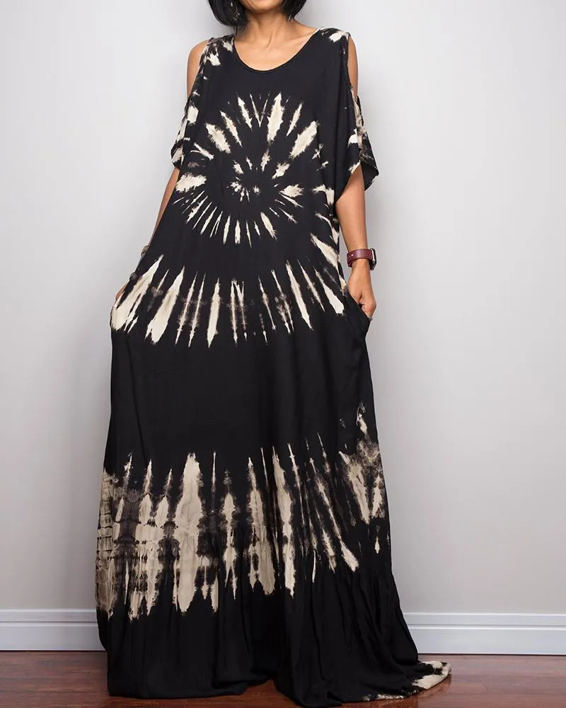Cold-Shoulder Tie-Dye Print Casual Maxi Dress